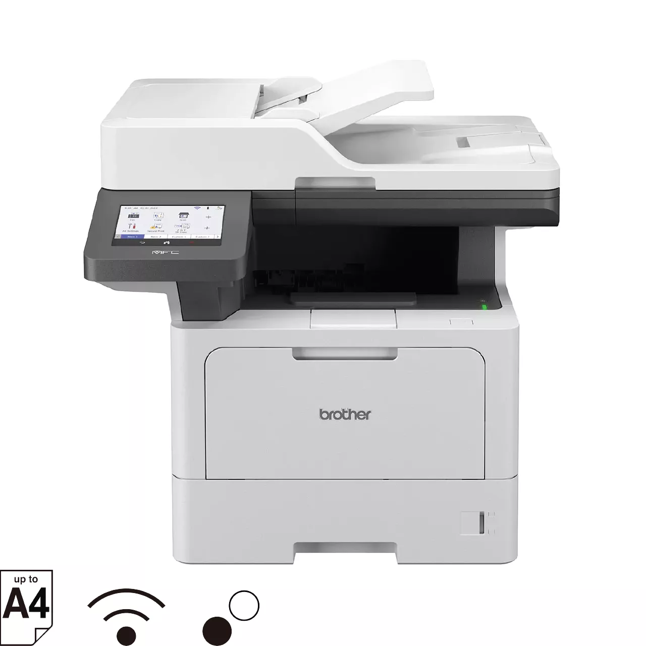 Wireless, high printing speed with 5-inch LCD touchscreen monochrome laser printer
