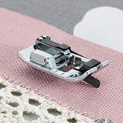 The Edge Joining Foot is used to easily join two pieces of fabric or attach lace or trim. It is also used for narrow edge stitching and pintucks. The middle metal guide keeps pieces perfectly aligned while joining.