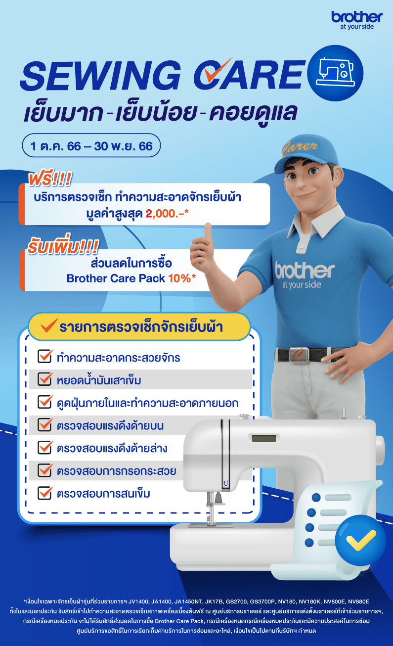 ฟรี! บริการตรวจเช็ก ทำความสะอาดจักรเย็บผ้า มูลค่าสูงสุด 2,000.-*