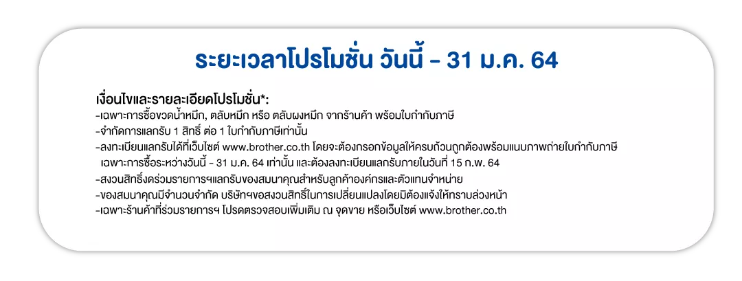 เราใช้คุ้กกี้เพื่อเป็นการปรับแต่งและปรับปรุงประสบการณ์การใช้งานของท่านบนเว็บไซต์ของกลุ่มบริษัทบราเดอร์ โดยหากท่านมีการใช้งานบนเว็บไซต์นี้อย่างต่อเนื่องเราขออนุญาติเข้าใจว่าท่านได้ทำการยอมรับการใช้คุ้กกี้ของเราแล้ว อย่างไรก็ตามหากท่านต้องการข้อมูลเพิ่มเติมโปรด