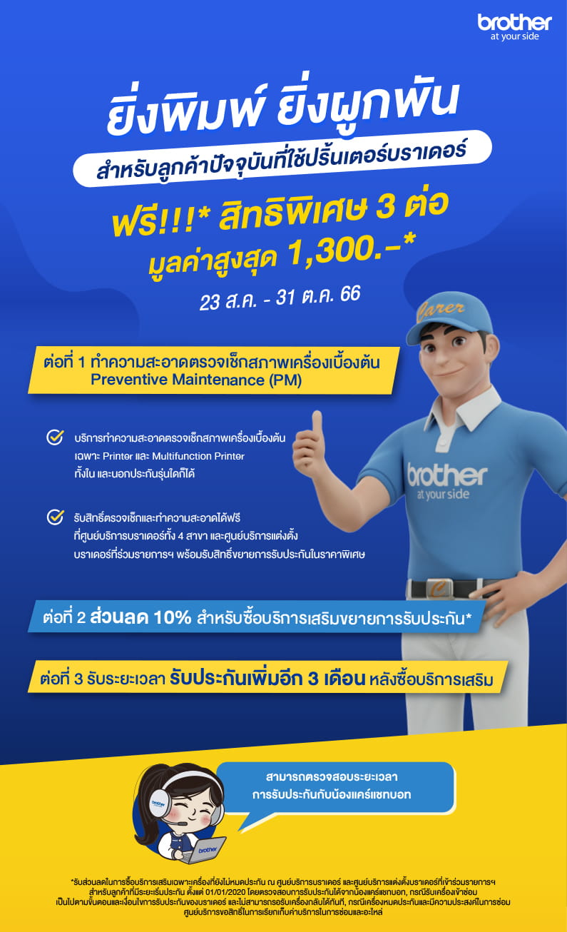 สำหรับลูกค้าปัจจุบันที่ใช้ปริ้นเตอร์บราเดอร์ รับสิทธิพิเศษทันที 3 ต่อ*