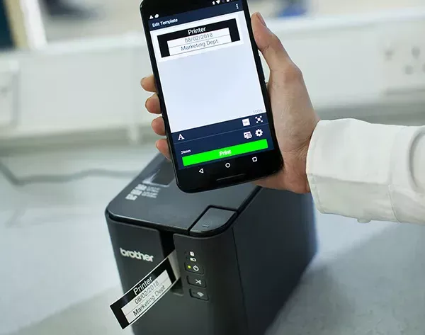 Brother P-touch iPrint&Label เป็นแอปที่ให้ใช้งานฟรี ที่ช่วยให้สามารถสร้างและพิมพ์ฉลากได้อย่างง่ายดายจากอุปกรณ์ Apple® หรือ Android™ ผ่านการเชื่อมต่อไร้สายกับเครื่องพิมพ์ฉลาก PT-P900W